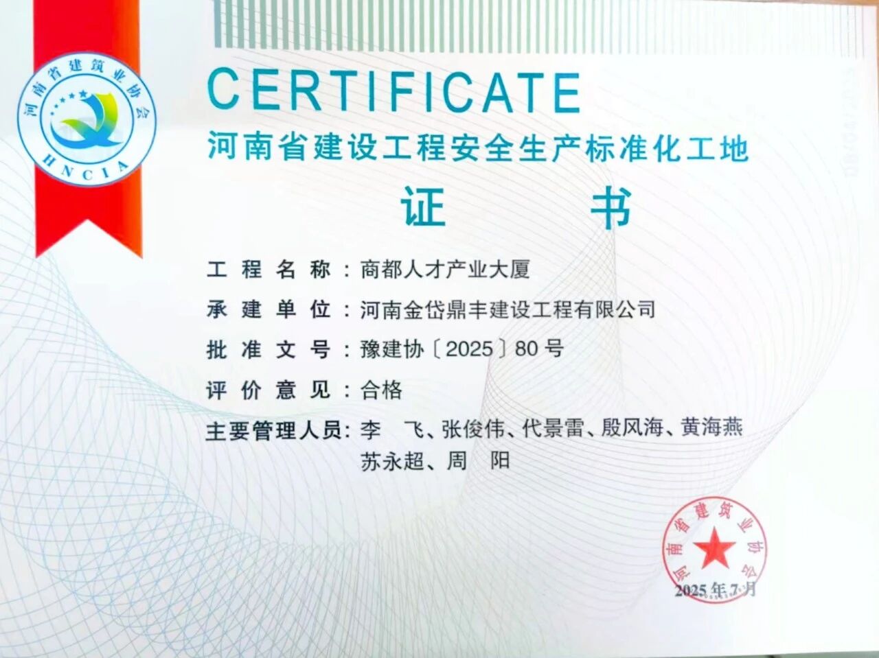 近日,河南省建筑業(yè)協(xié)會(huì)發(fā)布了《關(guān)于公布2025年度第一批河南省建設(shè)工程安全生產(chǎn)標(biāo)準(zhǔn)化工地名單的通知》,由公司監(jiān)理的商都人才產(chǎn)業(yè)大廈項(xiàng)目榮獲“河南省建設(shè)工程安全生產(chǎn)標(biāo)準(zhǔn)化工地”稱號(hào),標(biāo)志著項(xiàng)目在安全生產(chǎn)、文明施工及標(biāo)準(zhǔn)化管理方面取得顯著成效,為鄭州市重點(diǎn)工程建設(shè)樹(shù)立了新標(biāo)桿。