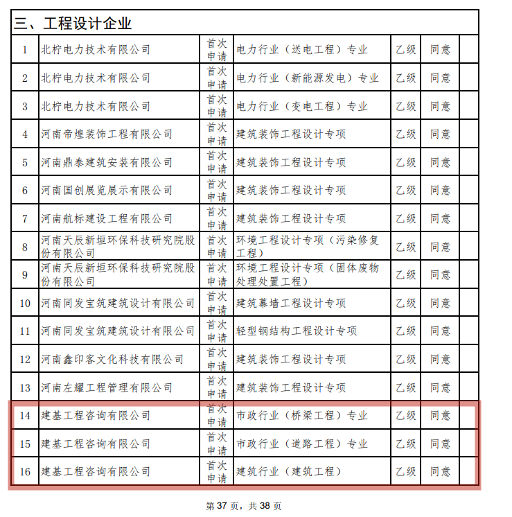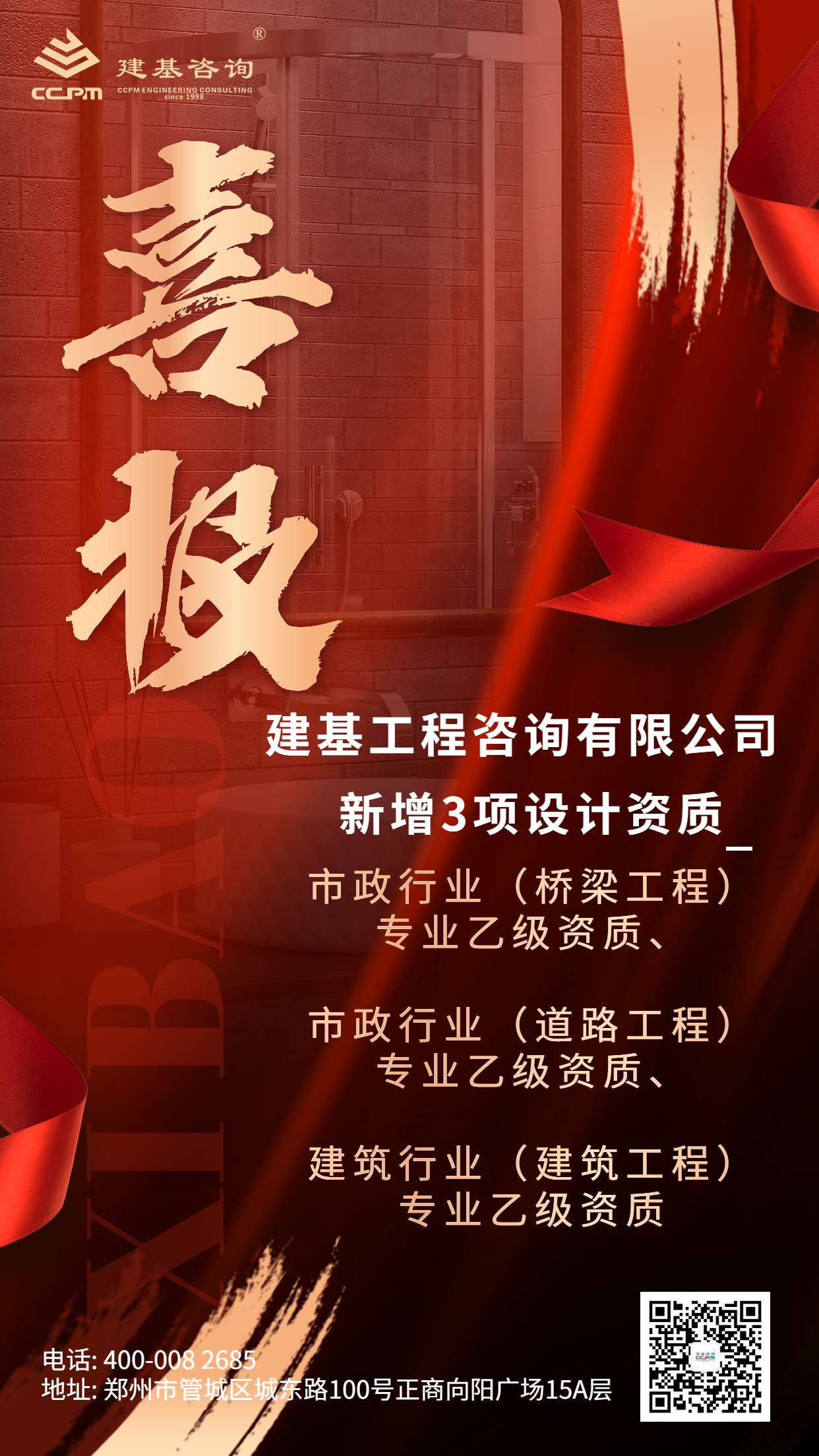 11月22日,在全體員工共同努力下,公司資質(zhì)管理工作再傳捷報(bào),成功增3項(xiàng)設(shè)計(jì)資質(zhì),分別是市政行業(yè)(橋梁工程)專業(yè)乙級(jí)資質(zhì)、市政行業(yè)(道路工程)專業(yè)乙級(jí)資質(zhì)、建筑行業(yè)(建筑工程)專業(yè)乙級(jí)資質(zhì)資質(zhì),這些資質(zhì)的獲得是公司在工程設(shè)計(jì)方面取得的又一次重要“升級(jí)”,為公司持續(xù)深耕區(qū)域市場(chǎng),拓展新的業(yè)務(wù)領(lǐng)域,謀求新合作方式等市場(chǎng)戰(zhàn)略多元化發(fā)展奠定了堅(jiān)實(shí)基礎(chǔ)。