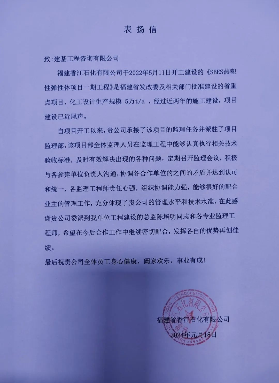 一封封表?yè)P(yáng)信,是我們不斷前行的強(qiáng)大動(dòng)力,每一次的肯定,都激勵(lì)著我們建基人繼續(xù)奮發(fā)向前!這些信件見(jiàn)證了建基人始終如一的初心,以及我們敢于擔(dān)當(dāng)、勇于創(chuàng)新的精神。