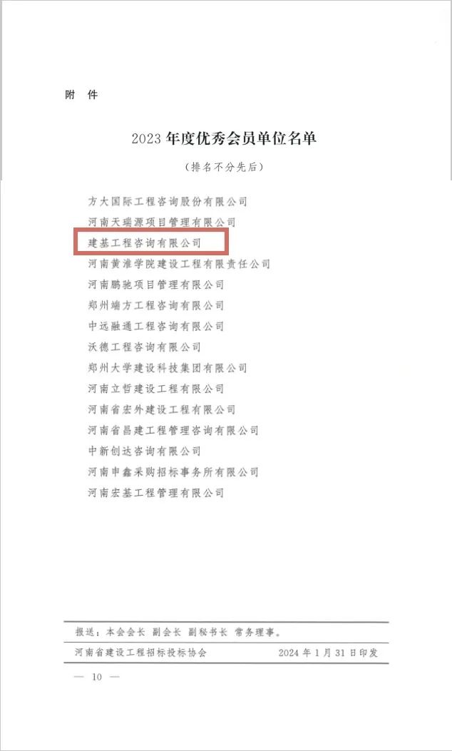 近日,河南省建設(shè)工程招標(biāo)投標(biāo)協(xié)會(huì)公布了“2023年度優(yōu)秀會(huì)員單位評(píng)選結(jié)果的通知”,河南省招標(biāo)投標(biāo)協(xié)會(huì)公布了“關(guān)于表彰2023年度誠(chéng)信自律建設(shè)先進(jìn)單位、先進(jìn)個(gè)人的決定”。