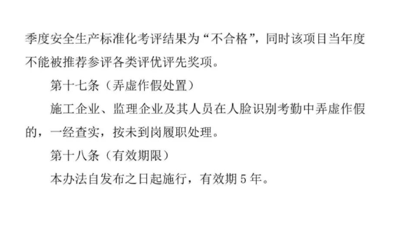 施工企業(yè)、監(jiān)理企業(yè)及其人員在人臉識別考勤中弄虛作假的,一經(jīng)查實(shí),按未到崗履職處理。