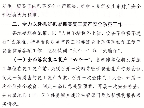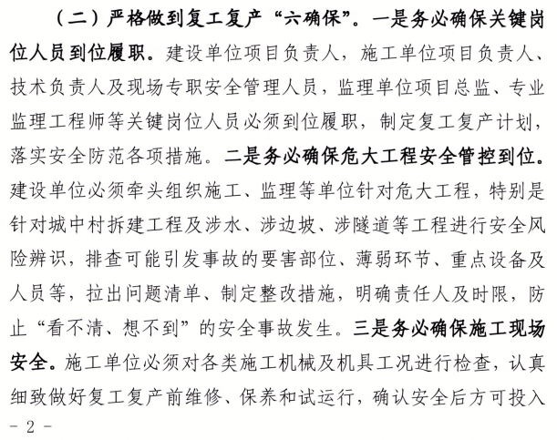 (二)嚴格做到復工復產(chǎn)“六確保”。