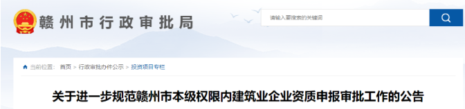 12月1日,贛州市行政審批局發(fā)布《關于進一步規(guī)范贛州市本級權限內建筑業(yè)企業(yè)資質申報審批工作的公告》,提出: