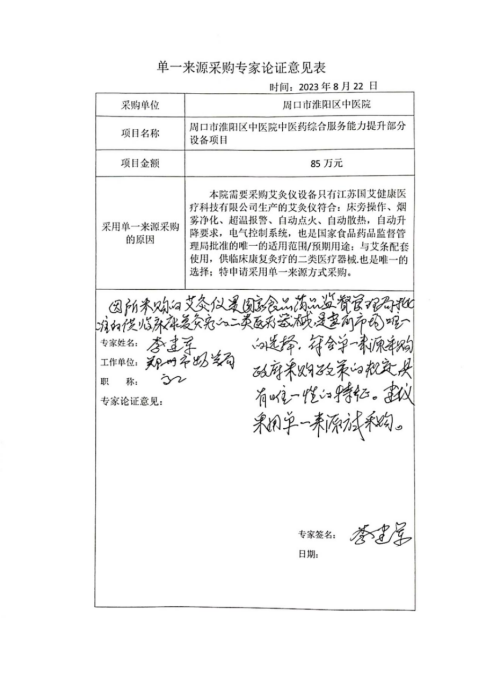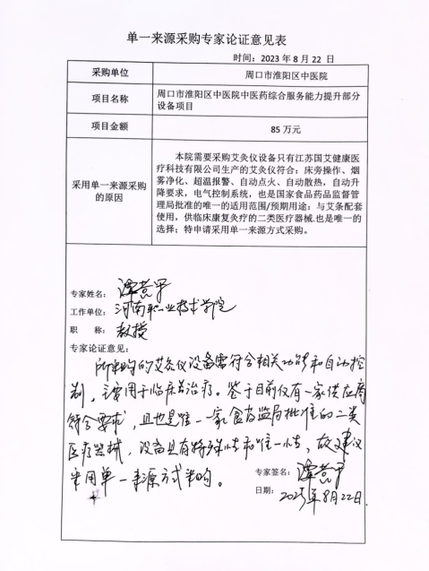 周口市淮陽區(qū)中醫(yī)院中醫(yī)藥綜合服務(wù)能力提升部分設(shè)備項(xiàng)目單一來源采購公示