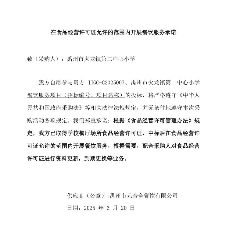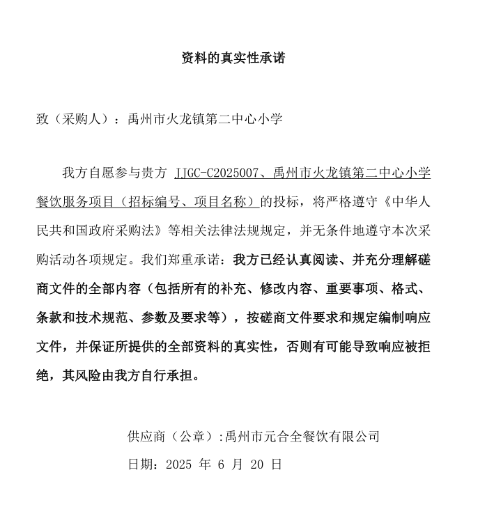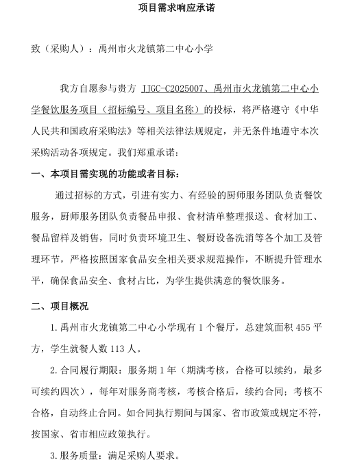 二、采購項目名稱:禹州市火龍鎮(zhèn)第二中心小學餐飲服務項目