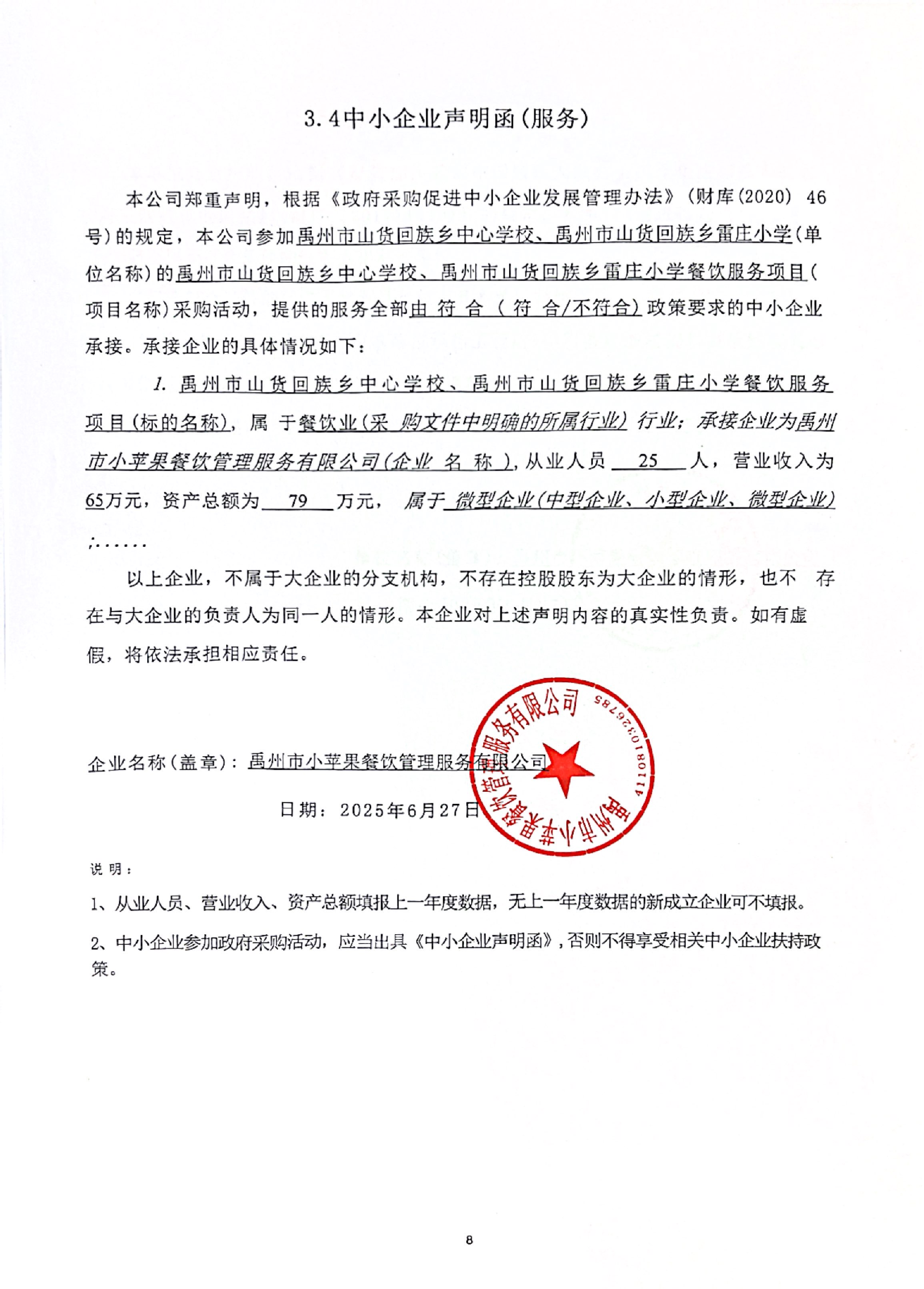 禹州市山貨回族鄉(xiāng)中心學(xué)校、禹州市山貨回族鄉(xiāng)雷莊小學(xué)餐飲服務(wù)項(xiàng)目