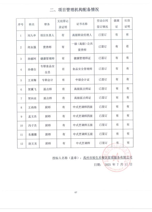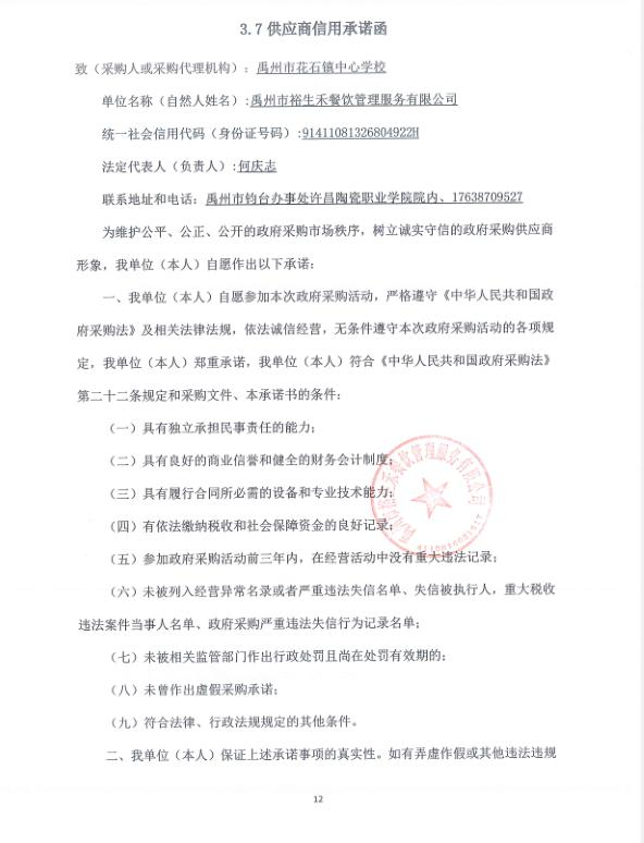 第一成交候選人:禹州市裕生禾餐飲管理服務(wù)有限公司