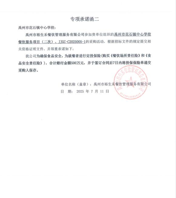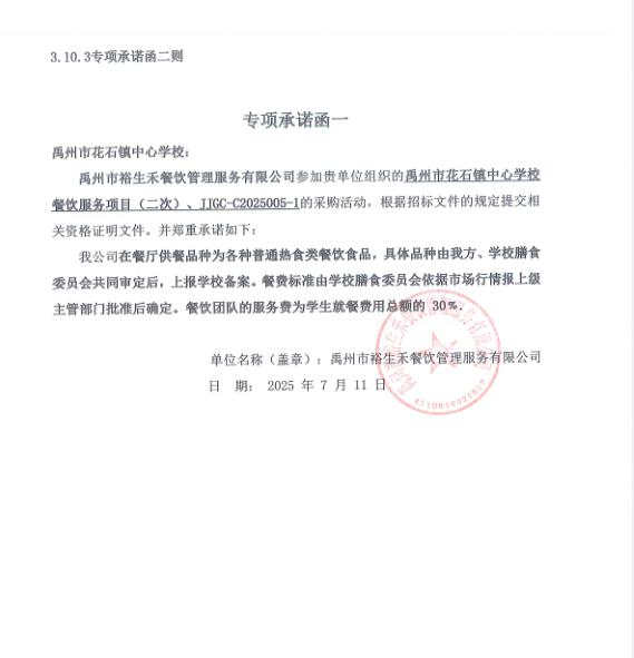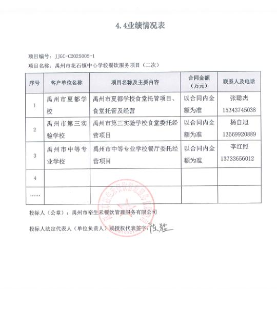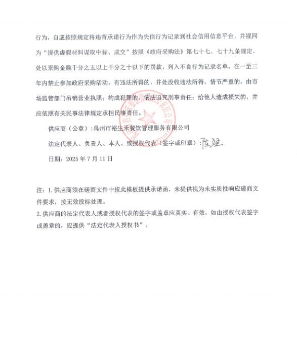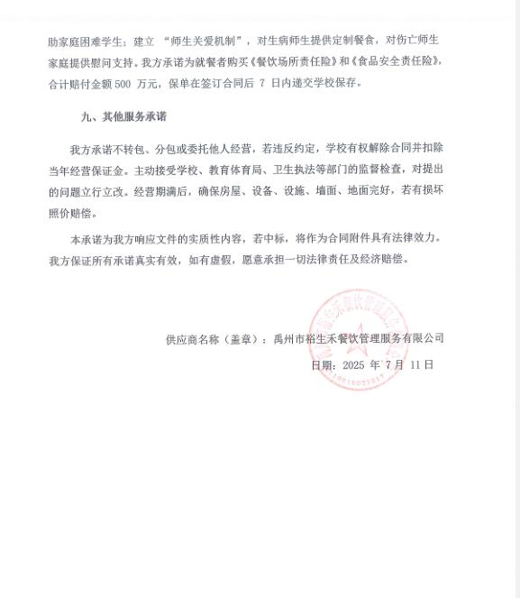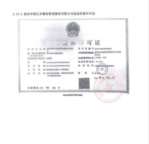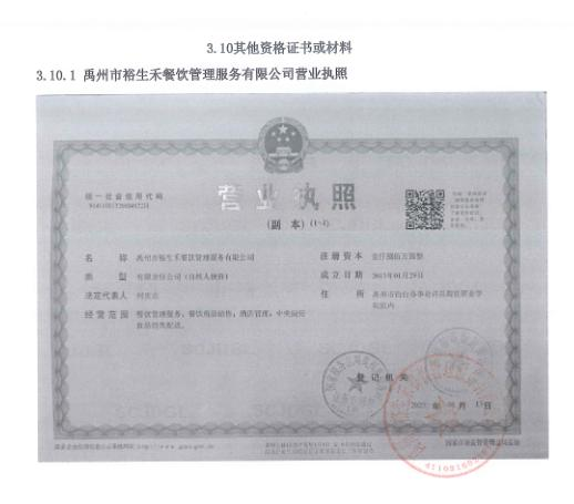 第一成交候選人:禹州市裕生禾餐飲管理服務(wù)有限公司