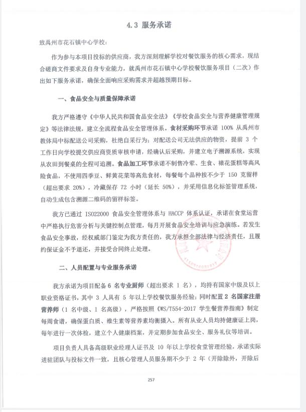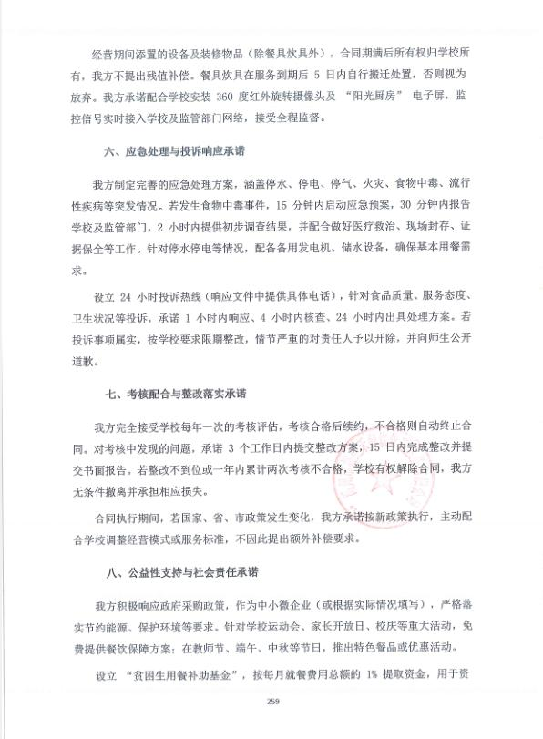 4 | 河南盛鮮禾餐飲管理有限公司 | 服務(wù)期1年(期滿考核,合格可以續(xù)約,最多可續(xù)約四次),每年對(duì)服務(wù)商考核,考核合格后,續(xù)約合同;考核不合格,自動(dòng)終止合同。如合同執(zhí)行期間與國(guó)家、省市政策或規(guī)定不符,按國(guó)家、省市相應(yīng)政策執(zhí)行 | 密封完好 |